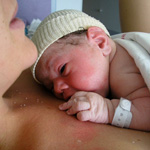 Quand le bébé est né, on attend son premier cri, si besoin la sage femme le stimulera. Elle évaluera alors la vitalité du nouveau-né selon plusieurs critères (rythme cardiaque, couleur de l’enfant, tonus, reflexes et mouvements respiratoires) qu’on notera de 0 à 2 à 1 minute de vie, 3, 5 et 10 minutes. Ensuite, on coupe le cordon ombilical (c’est la quasi unique intervention du père). Le plus souvent on propose à la maman de prendre le bébé quelques minutes dans ses bras en peau à peau si tout va bien. On fait ensuite les premiers soins au bébé :